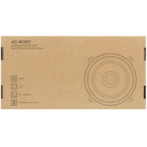 Мощность широкополосной акустической системы Ural АС-Ф1307 равняется 45 Вт, что в сочетании с чувствительностью 86 дБ гарантирует хорошую громкость без дребезжания на высоком уровне. Диапазон воспроизводимых частот располагается в пределах 85-22000 Гц, благодаря чему любая мелодия будет радовать идеальным балансом низких, средних и высоких частот.