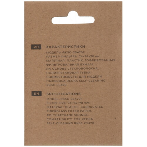 Фильтр Reoka RKSC-CS470F устанавливается в пылесос Reoka Self-cleaning RKSC-CS470. Он рассчитан на многократное использование: если фильтр загрязнился, его можно почистить и снова вставить в пылесос. Через 3-4 месяца фильтр рекомендуется заменить.