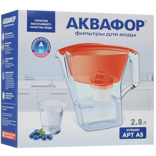 Фильтр-кувшин Аквафор Арт А5 абсолютно безопасен для контакта с водой. Модель может похвастаться солидным объемом 2.8 л и быстрой скоростью фильтрации. Один фильтрующий элемент предусмотрен в комплекте поставки, чтобы вы могли начать пользоваться кувшином, как только его распакуете и помоете.