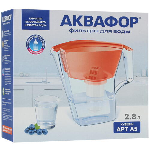 Для изготовления фильтра-кувшина Аквафор Арт А5 используется пищевой пластик – прочный материал, который не теряет своей первоначальной прозрачности со временем. Он абсолютно безопасен для контакта с водой.