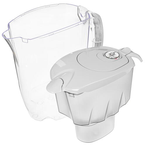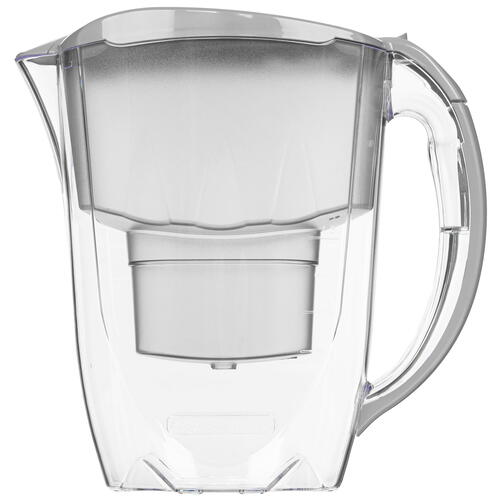 Фильтр-кувшин Аквафор Орион из пищевого пластика не влияет на вкус и цвет воды. Модель выполнена в сером полупрозрачном корпусе с емкостью на 2.8 л и воронкой на 1.4 л. Разборная конструкция облегчает очистку всех деталей от налета и прочих загрязнений.