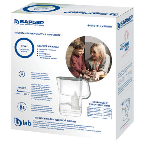 Фильтр-кувшин Барьер Киото XL изготовлен в корпусе из пищевого пластика. Внутренняя воронка имеет объем 1.4 л. Прозрачный резервуар для очищенной воды вмещает 3.5 л. Фильтрующий модуль с ресурсом 350 л очищает воду от механических примесей, органических соединений, солей жесткости, хлора, тяжелых металлов, посторонних привкусов и запахов. Разборная конструкция с клапаном на крышке обеспечивает удобное заполнение и простую очистку фильтр-кувшина Барьер Киото XL от загрязнений. Ручка обтекаемой формы гарантирует комфортное удержание.