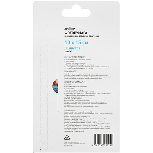 Фотобумага Aceline Gloss [0805541] предназначена для использования совместно с принтерами, выполняющими печать фотоизображений на основе струйной технологии. Данная бумага выполнена в формате А6 (150x100 мм). Благодаря поддержке разрешения 5760 dpi, плотности 180 г/м² и глянцевому покрытию на бумаге формируются детализированные изображения фотографического качества с реалистичными и яркими оттенками. Aceline Gloss [0805541] поставляется в упаковке, в которой содержатся 50 листов бумаги.