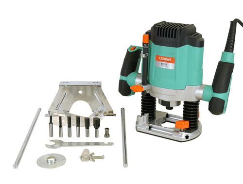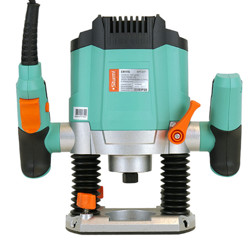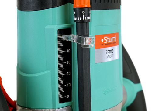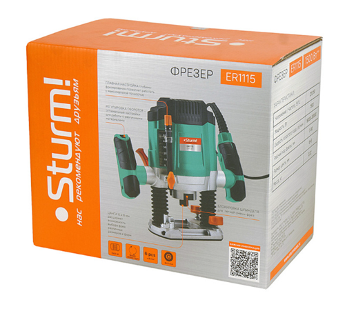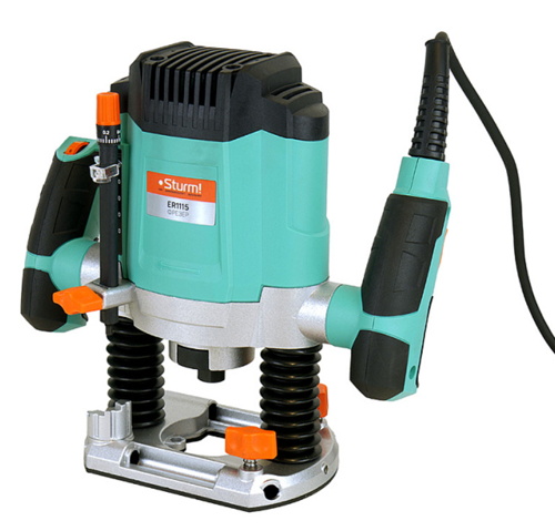 Фрезер Sturm ER1115 – компактный и удобный электроинструмент средней мощности для исполнения пазов, канавок, отверстий, снятия фасок, подгонки краев в древесине и схожих материалах.