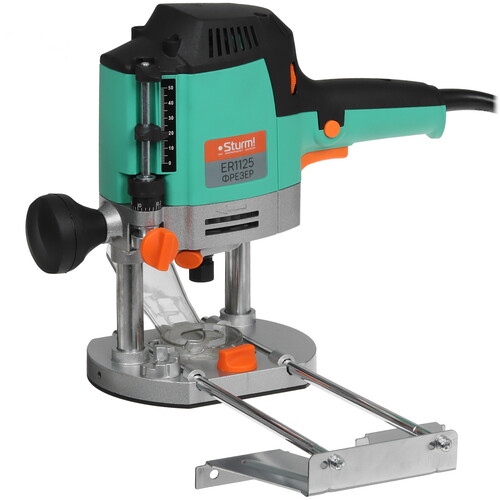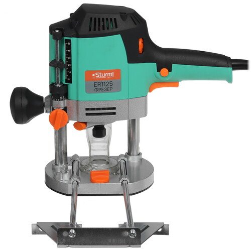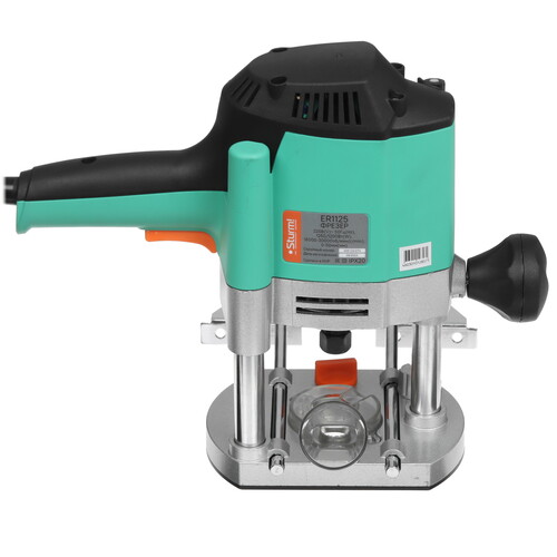 Фрезер Sturm! ER1125 — маневренный, многофункциональный электроинструмент для всех видов фрезерования: продольного, фигурного, по шаблону, по радиусу заготовок из различных материалов. Подготовке к выполнению требуемой задачи, данной моделью, пособить электронная регулировка скорости оборотов и плавная настройка глубины фрезерования в пределах 50 мм, тем более есть возможность установить цангу диаметром как 6 мм, так и 8 мм.