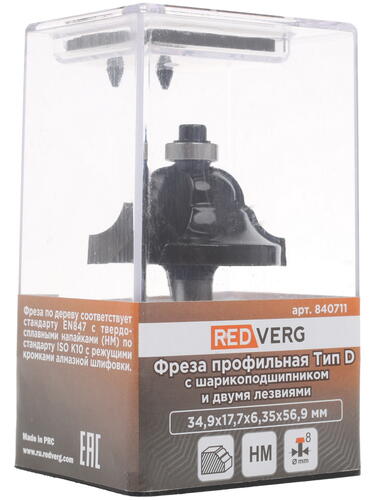 Профильная фреза RedVerg 840711, имеющая 8-миллиметровый хвостовик, относится к типу D. Фреза оснащена шарикоподшипником и 2 лезвиями с великолепными режущими свойствами. Изделие, предназначенное для работы с древесиной, соответствует профессиональному уровню качества, и подходит для интенсивной эксплуатации.