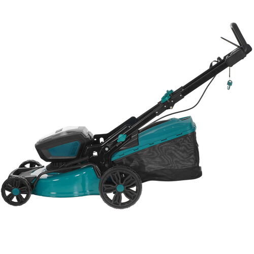 Газонокосилка аккумуляторная Finepower OneBase CLMBL450 характеризуется максимальной частотой вращения ножа 2800 оборотов в минуту. Объем травосборника – 60 л. Выброс травы также может производиться назад. Рукоятка газонокосилки имеет складную конструкцию.