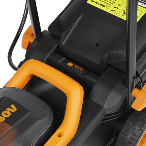 Аккумуляторная газонокосилка Worx WG779E подойдет для обслуживания малого или среднего озелененного участка близ загородного дома или дачи, площадь которого находится в пределах 300 кв. метров. Инструмент получает питание от литий-ионного аккумулятора и выкашивает за один проход полосу травы шириной 340 мм. Высоту скашивания при этом можно регулировать в диапазоне от 20 до 70 мм. Скошенные стебли выбрасываются назад на газон или поступают в тканевый съемный травосборник объемом 30 л.