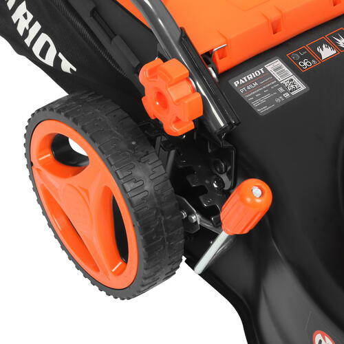 Бензиновая газонокосилка Patriot PT 41LM со складной рукояткой оснащается 4 пластиковыми колесиками и перемещается по обслуживаемой озелененной территории за счет мускульной силы оператора, являясь несамоходной моделью. В ней предусмотрена система регулировки высоты скашивания травы в диапазоне от 25 мм до 75 мм, при этом ширина скашивания за один проход равняется 410 мм. Срезанная трава накапливается в пластиковом травосборнике, объем которого составляет 40 литров.