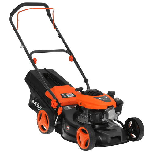 Бензиновая газонокосилка Patriot PT 41LM оснащается четырехтактным бензиновым двигателем производства бренда Patriot, который демонстрирует мощность 2574 Вт (3.5 л.с.) при рабочем объеме 150 куб. см. Бензин для оборудованного глушителем двигателя поступает из топливного бака, вмещающего 1 литра. Косилка станет отличным приобретением для большого приусадебного хозяйства и позволит без лишних усилий выкашивать траву на площади до 1000 кв. метров.