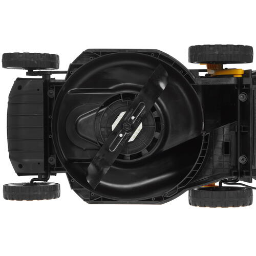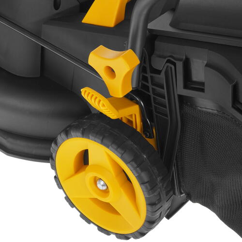 Сбор скошенной травы выполняется в контейнер емкостью 30 л, который выполнен из пластика и ткани. Корпус из ударопрочного пластика устойчив к механическим повреждениям и воздействию воды. Элементы управления расположены на рукоятке для простого доступа. Четыре колеса гарантируют маневренность газонокосилки CAT DG170.