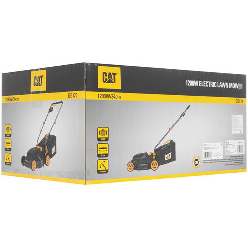 Электрическая газонокосилка CAT DG170 с двигателем мощностью 1200 Вт подходит для ухода за газоном небольшой площади. Она имеет ширину скашивания 340 мм. Высота среза регулируется в 6 положениях от 25 до 75 мм.