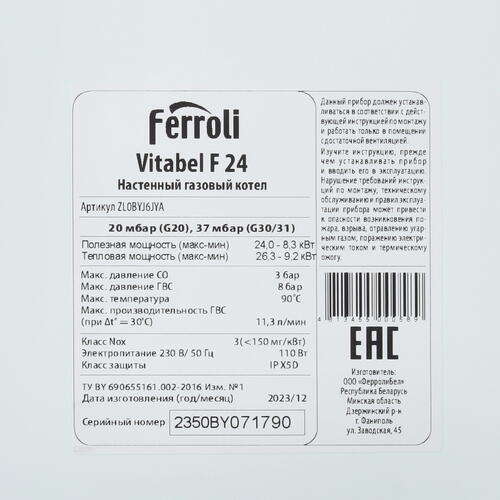 Газовый котел Ferroli Vitabel F24 настенный [9066616]