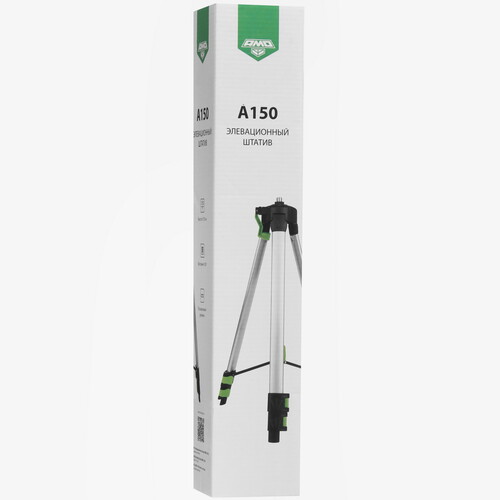 Штатив AMO A150 высотой 1.5 м создан для стационарной установки измерительного инструмента, фото- или видеокамеры. Конструкция состоит из 1 секции, которая представлена треногой. Для фиксации устройства у модели есть резьба 5/8".