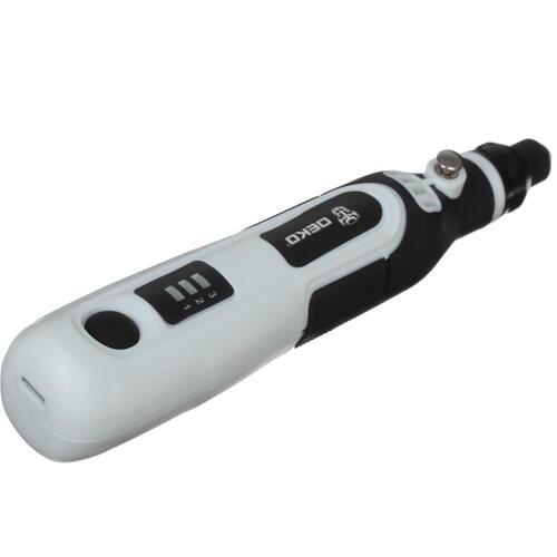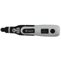 Гравировальная машина DEKO DKRT3.6-Li SET 063-1400 своим видом напоминает небольшую дрель и применяется для снятия краски, тонких пропилов, выполнения штампов, надписей. Инструмент получает питание от Li-lon-аккумулятор емкостью 0.6 А·ч. Он весит всего 0.4 кг и подходит для работы с разными материалами.