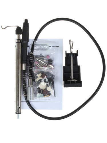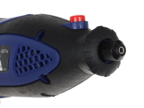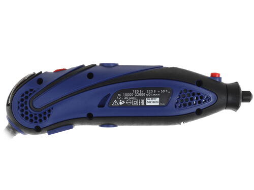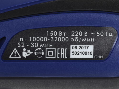Скорость вращения составляет от 10000 до 32000 оборотов в минуту. Вы сможете самостоятельно выставить этот параметр для полноценной обработки материалов. Питание оборудование получает от сети 220 В, техника потребляет не так много электрической энергии.