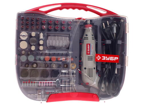 Гравер Зубр ЗГ-130ЭК H219 – многофункциональный электрический инструмент, представленный в компактном корпусе из пластика в сером цвете. Качественный прибор легко справится со следующими задачами: резкой, шлифованием, гравировкой, полировкой. Устройство подходит для обработки самых различных материалов – от пластмассы и пластика до дерева, камня, кафеля и металла. Среди преимуществ Зубра ЗГ-130ЭК H219 – высокая производительность, универсальность использования, а также большой ресурс: в набор входит 219 предметов.