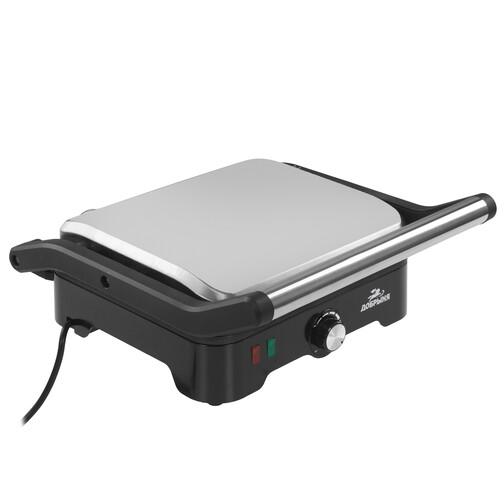 Гриль Добрыня DO-5205 оборудован механическим переключателем для выбора температуры. Верхняя панель открывается на 180°, увеличивая рабочую площадь и позволяя одновременно готовить несколько блюд. Световой индикатор оповещает о готовности устройства приступить к кулинарному процессу.
