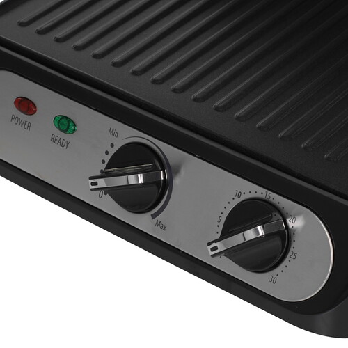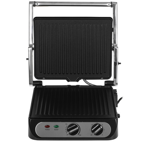 Электрогриль - это отличный компактный прибор для быстрого приготовления горячих блюд. Для наилучшего пропекания в конструкции реализован равномерный прогрев рабочей поверхности. Съемные панели с антипригарным покрытием облегчают работу и очистку гриля. Не нагревающаяся ручка позволяют использовать устройство без риска обжечься, а система защиты от перегрева исключает повреждение прибора. Плавающая конструкция ручки позволяет достичь быстрой и равномерной прожарки блюд под прессом. В режиме барбекю вы сможете готовить на двух панелях одновременно - для этого крышка прибора открывается на 180°. Таймер оповестит вас о готовности блюд звуковым сигналом. С помощью удобного регулятора можно подобрать оптимальный температурный режим. Устройство снабжено индикаторами работы и нагрева, а также прорезиненными ножками для устойчивости.