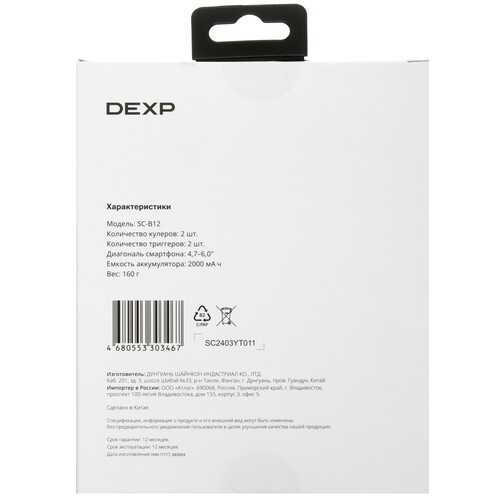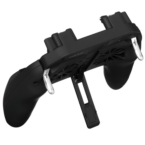 Игровой держатель DEXP SC-B12 оснащен вентиляторами. Они охлаждают смартфон во время игры и не допускают его перегрева при длительной игровой сессии. Встроенный аккумулятор емкостью 2000 мАч позволяет увеличить автономное время работы телефона на 3–4 часа. В корпусе уже предусмотрены места, куда будут установлены кабели подключения.