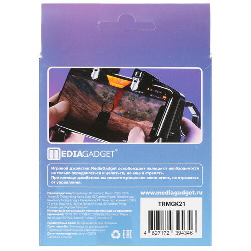 Игровой держатель MediaGadget TRMGK21 совместим со смартфонами любых производителей. Операционная система мобильного устройства также может быть любой. Держатель имеет 2 кнопки. Материал изготовления аксессуара – высококачественный, устойчивый к внешним воздействиям пластик черного цвета. Держатель поставляется в компактной коробке, имеющей привлекательный дизайн.