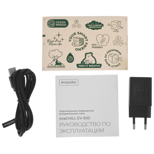 Охладитель воздуха Evapolar evaCHILL EV-500 работает достаточно тихо, не превышая показатель шума 50 дБ. Пользователь сможет выбрать одну из четырех скоростей работы вентилятора. Для очистки воздуха от пыли и его увлажнения в комплектацию модели входят антибактериальный и увлажняющий фильтры, требующие замены раз в 3-6 месяцев. Работа прибора осуществляется от порта USB.