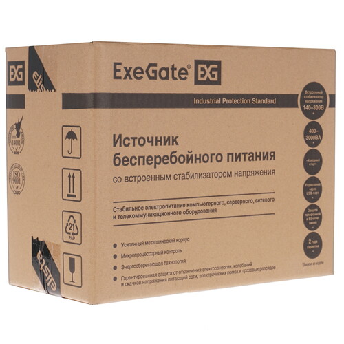 ИБП ExeGate SpecialPro серии UNB выполнен в прочном металлическом корпусе и относится к моделям линейно-интерактивного типа. Он обеспечивает надежную защиту различного подключенного оборудования от импульсных и высокочастотных помех, короткого замыкания, перегрузки, глубокого разряда и других неблагоприятных воздействий в электросети. Одна из особенностей ExeGate SpecialPro – система автоматической регулировки напряжения. В качестве источника автономной работы могут устанавливаться свинцово-кислотные батареи. Многоцветный световой индикатор оповещает о состоянии работы устройства.