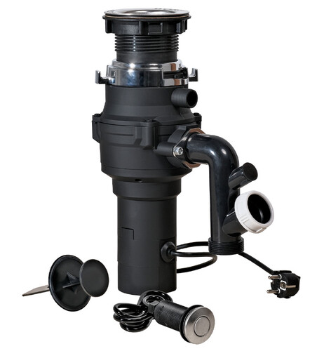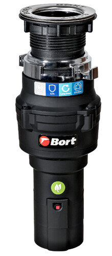 Bort Caiman измельчает отходы в 3 ступени со скоростью до 3.2 кг/мин. Этого более чем достаточно для бытового применения. Встроенная система защиты от перегрузки автоматически отключает устройство при перегреве и не дает его включать до полного остывания. Есть блокировка при заклинивании. Пневмокнопка для запуска измельчителя оснащена кабелем достаточной длины для вывода и установки на раковину.