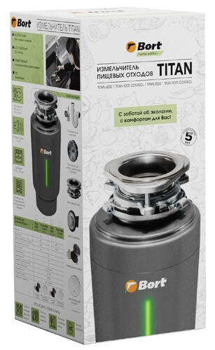 Измельчитель пищевых отходов Bort TITAN 6000 ваш надежный помощник на кухне. Прибор утилизирует остатки пищи. Измельченные отходы перемалываются и легко смываются в канализацию потоком воды, не создавая засоры.