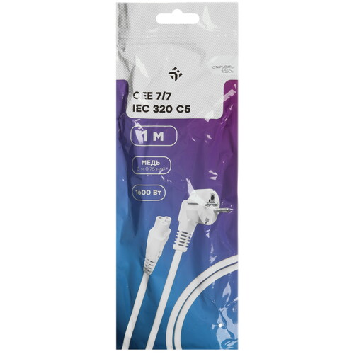 Кабель питания DEXP IEC C5 - CEE 7/7 белого цвета длиной 1 м используется для подключения стационарного компьютера, ноутбука, принтера и любого другого оборудования с разъемом IEC C5 к бытовой сети 220 Вт. Модель используется для обеспечения энергией оборудования с собственным блоком питания. К розетке провод подсоединяется с помощью вилки CEE 7/7.