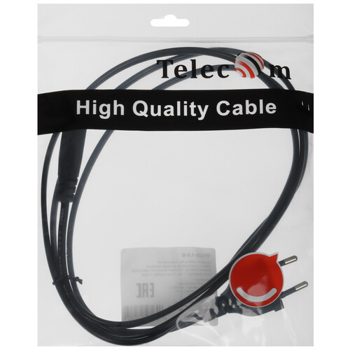 Кабель питания Telecom предназначен для питания бытовых устройств, в оснащение которого входит разъем IEC 320 C7. Подключение к розетке происходит с помощью вилки CEE 7/16. Максимально допустимый ток нагрузки равен 3 А.