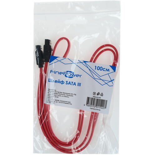 Шлейф FinePower SATA - SATA имеет достойную длину, равную одному метру. С такой длиной использовать представленный кабель можно в системных блоках, отличающихся большими размерами. Каждый из коннекторов SATA, которыми оборудован провод, имеет специальную защелку, благодаря которой он будет надежно зафиксирован в соответствующем разъеме комплектующего элемента компьютера.