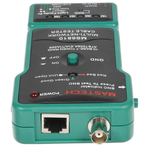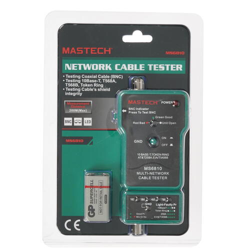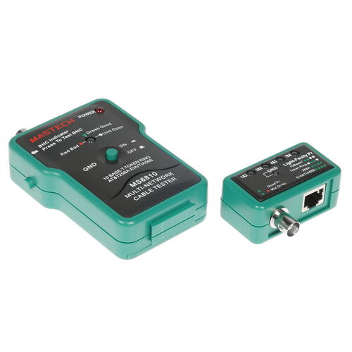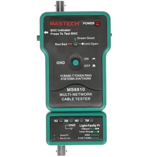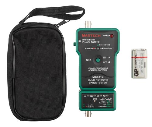 Тестер Mastech MS6810 создан для определения целостности сети и кабеля, поиска разрывов, замыканий, обрывов и нестыковок. За это его ценит персонал, который работает с точными измерениями. Оно может подключаться к устройствам за счет разъемов BNC и RJ45.