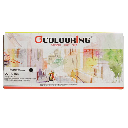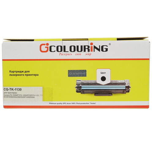 Картридж лазерный Colouring CG-TK-1130 обладает ресурсом 3000 страниц. Цвет тонера – черный. Полная информация о картридже размещена на упаковке, представляющей из себя картонную коробку. Упаковка надежно защищает расходный материал от случайных механических воздействий в процессе транспортировки и хранения.