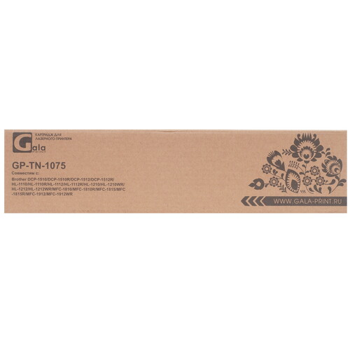 Картридж лазерный GalaPrint TN-1075 подходит для установки в разные модели МФУ и принтеров Brother. По размерам, форме и другим техническим особенностям устройство точно соответствует оригинальным расходникам Brother TN-1075. Картридж предназначен для черно-белой печати.