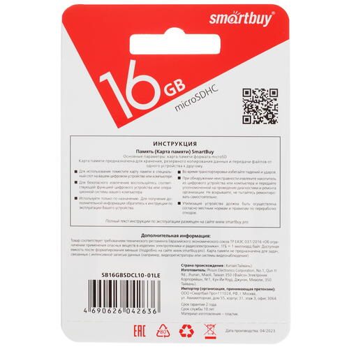 Карта памяти Smartbuy microSDHC 16 ГБ позволяет увеличить пространство для размещения фотографий, музыки и прочего мультимедийного контента. Она подходит для совместного использования со смартфонами, планшетами, видеорегистраторами, цифровыми фотоаппаратами и другими устройствами. Объем 16 ГБ позволяет освободить внутреннюю память под размещение различных файлов и получать доступ к ним при необходимости. В комплекте поставляется переходник, который позволяет размещать карту памяти Smartbuy в разъеме SD.