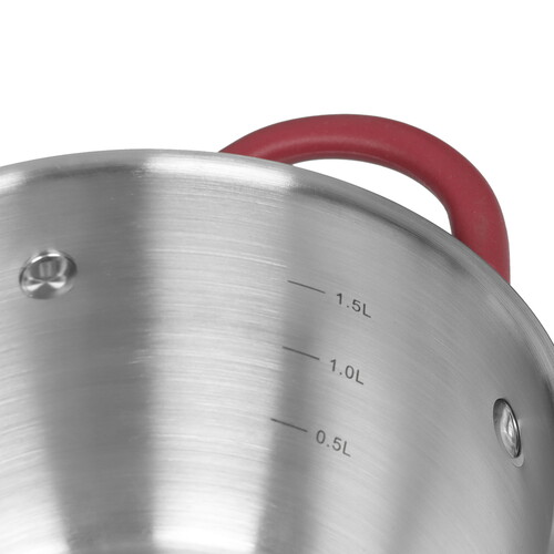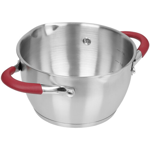 Кастрюля Inhouse Marsala из нержавеющей стали обладает диаметром 18 см и вмещает 2.3 л. Трехслойное капсулированное дно обеспечивает равномерный прогрев и не дает продуктам пригорать. Кастрюля оснащена внутренними отметками литража, носиком для слива и наружной сатинированной полировкой.
