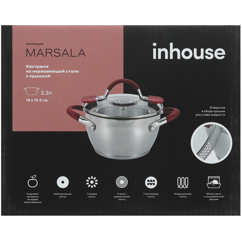 Кастрюля Inhouse Marsala 2.3 л 18 см серебристый [5445075]