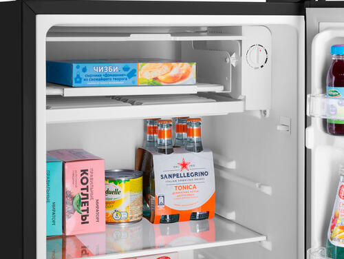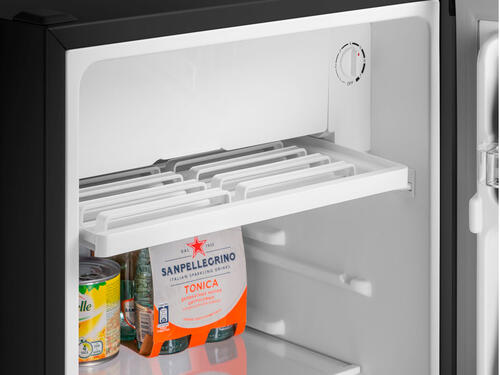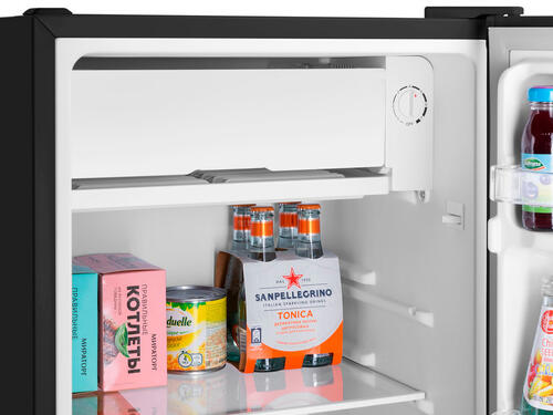 Компактный однокамерный однодверный холодильник высотой 83 см с камерой охлаждения. Корпус шириной 47 см сделан из металла. Внутренняя часть выполнена из антибактериального белого пластика легкой очистки. Предусмотрена возможность перенавешивания двери. Температура в холодильнике выставляется с помощью термостата, расположенного около камеры охлаждения. Уровень шума при работе компрессора составляет всего 40 Дб. Класс энергопотребления: A+.