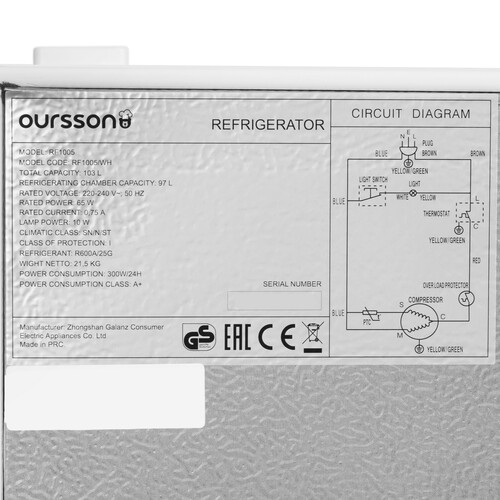 Яркий, стильный, компактный холодильник RF1005 Oursson объемом 103 литра позволяет хранить в нем фрукты, овощи, зелень, напитки и многое другое. Он прекрасно подойдет для маленьких уютных кухонь, небольших помещений, офисов, дач, а также в качестве дополнительного холодильника, например, для напитков. В нем имеются стеклянные полки, полка с держателем для бутылок, отделение для яиц, ящик для овощей, а в верхней части холодильника есть зона сохранения свежести c температурой 0...-10°C. Съемные полки при необходимости можно извлечь, если нужно поставить в холодильник что-то объемное. Класс энергопотребления А+ позволяет экономно использовать электроэнергию.