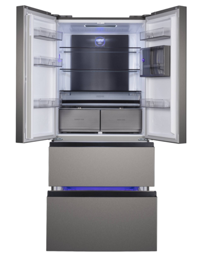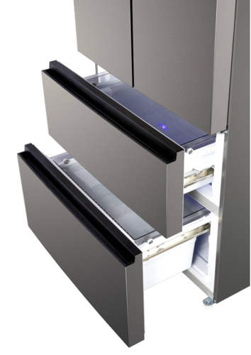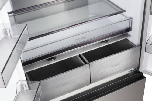 Система «No Frost» избавляет вас от необходимости постоянно размораживать камеру благодаря автоматической системе удаления инея. Вместо разморозки можно заняться приятными и полезными делами! Специальный вентилятор в холодильной камере обеспечивает перемешивание воздуха и соответственно равномерное распределение температуры. Также динамическая система способствует уменьшению, смешиванию запахов в холодильнике и быстрому охлаждению большого количества продуктов. Управление температурой стало возможно всего одним касанием! Очень удобно выбирать не только температуру, но и дополнительные функции, индикаторы которых находятся рядом с дисплеем.