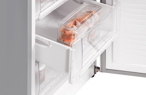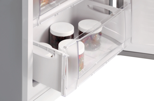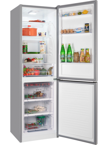 NORD NRB 162NF S — это двухкамерный холодильник, который сочетает в себе стильный внешний вид и практичность. Он создан с использованием передовых технологий и предназначен для хранения продуктов. Отдельностоящая модель с общим объемом 310 литров и нижним расположением морозильной камеры подходит для тех, кто ценит удобство в повседневной эксплуатации. Высота 188 см делает устройство вместительным, но при этом визуально легким. Модель выполнена в стильном и лаконичном дизайне, в серебряном цвете. Благодаря системе охлаждения Frost Free холодильник избавляет от необходимости ручного размораживания. В холодильной камере используется капельная система оттаивания, а в морозильной — No Frost. Благодаря этому стенки остаются сухими и чистыми, а продукты хранятся без наледи. Дополнительное преимущество — независимая циркуляция воздуха, которая поддерживает стабильную температуру и оптимальный уровень влажности в каждом отделении. Морозильная камера объемом 75 литров обеспечивает заморозку до 3,5 кг продуктов в сутки. Температура внутри отделений остается стабильной: 0…+8°C в холодильной части и до -18°C - в морозильной. Модель работает с низким уровнем шума — до 41 дБ, а также отличается высокой энергоэффективностью класса A+, что делает ее надежной и экономичной в эксплуатации.