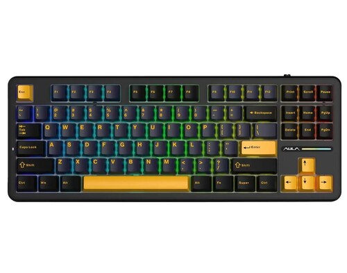 AULA F87 Thunder Black - механическая клавиатура с тремя вариантами подключения: проводное, радиоканал и Bluetooth. Отличается наличием RGB-подсветки и извлекаемыми свитчами.