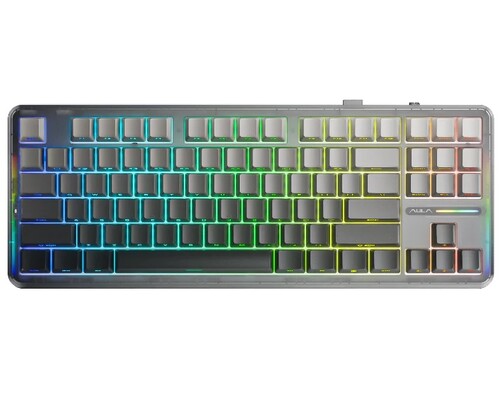 AULA F87 Gradient Grey - механическая клавиатура с тремя вариантами подключения: проводное, радиоканал и Bluetooth. Отличается наличием RGB-подсветки и извлекаемыми свитчами.