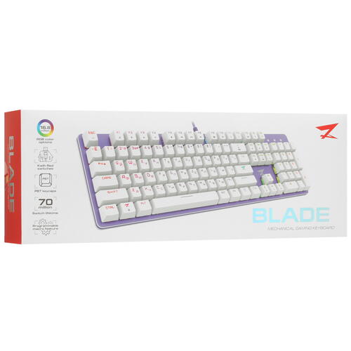 Клавиатура проводная ZET GAMING Blade оформлена в фиолетовом корпусе, дополнена подсветкой, что делает ее эффектным устройством для игр. Она содержит 104 клавиши, в основе которых ‒ линейные переключатели Kailh Red с длительным ресурсом и точным откликом. Низкопрофильная конструкция делает механическую клавиатуру удобной для длительной работы и игровых сессий.