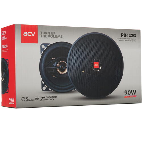 Акустика ACV PB-422G порадует стильным дизайном, который подчеркивает лаконичная защитная сетка и фирменный логотип. 2-полосная система спокойно выдерживает работу на морозе -35°C и не боится жары +55°C. Динамики с диаметром 10 см позволят насладиться чистым и объемным звучанием во время поездок.