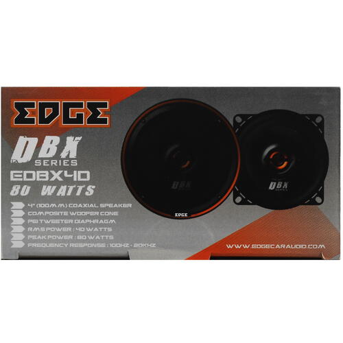 Коаксиальная АС EDGE EDBX4D-E2 состоит из двух круглых динамиков диаметром 4 дюйма. Она отличается выходной мощностью до 80 Вт и поддержкой частотного диапазона 100-20000 Гц. Диффузор из композитного материала совместно с диафрагмой твитера PEI обеспечивают высокую точность воспроизведения звука во всем диапазоне громкости с минимальным риском искажений. Передняя сторона динамиков выделяется оранжевой окантовкой и металлической сеткой, которая защищает чувствительные компоненты АС EDGE EDBX4D-E2 от внешних механических воздействий.