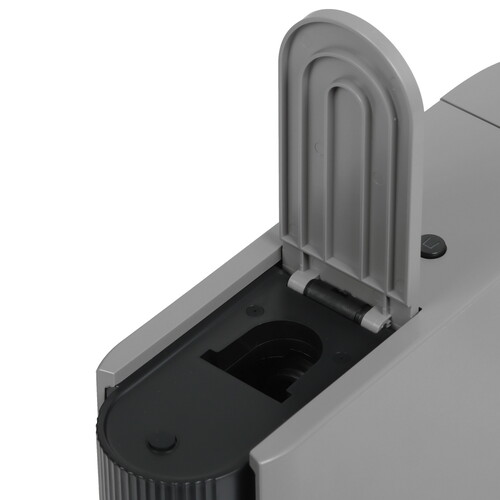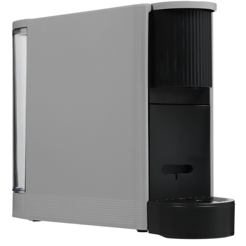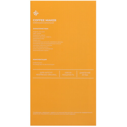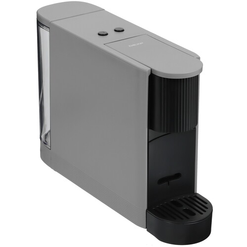 Кофемашина капсульная DEXP DCM-201N в сером корпусе шириной всего 8.3 см не занимает много места на кухонном столе. Есть кнопочная панель управления, индикаторы выбранного режима и готовности. Регулируемая подставка позволяет использовать чашки разной высоты.