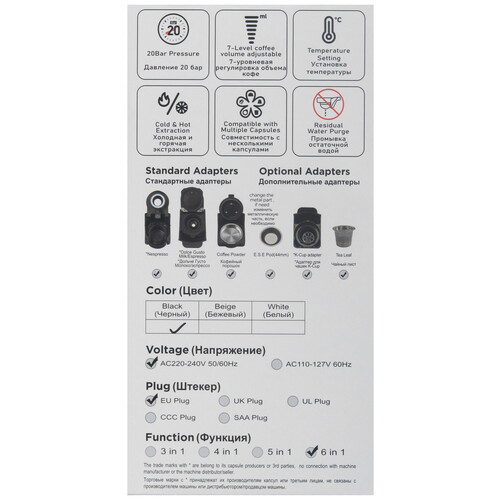 Капсульная кофемашина HIBREW 6-в-1. Наслаждайтесь кофе, как у бариста, у себя дома с помощью функции плавного переключения между горячим и холодным режимами. Многофункциональные режимы приготовления — наслаждайтесь эспрессо, американо, черным кофе, холодным кофе и функцией приготовления горячей воды — все в одной машине.