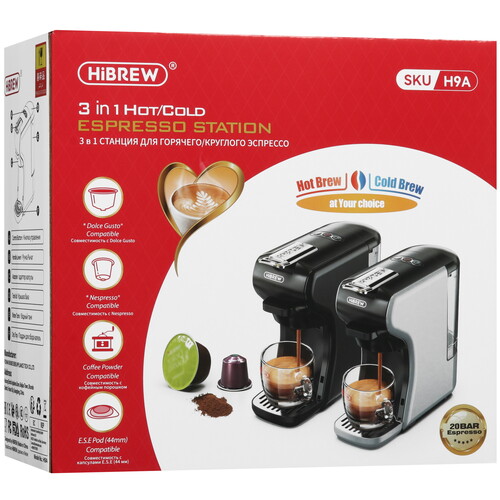 Универсальная кофемашина Hibrew H9A – миниатюрная и аккуратная, идеально подходит для небольшой кухни или рабочего пространства. Совместима с
